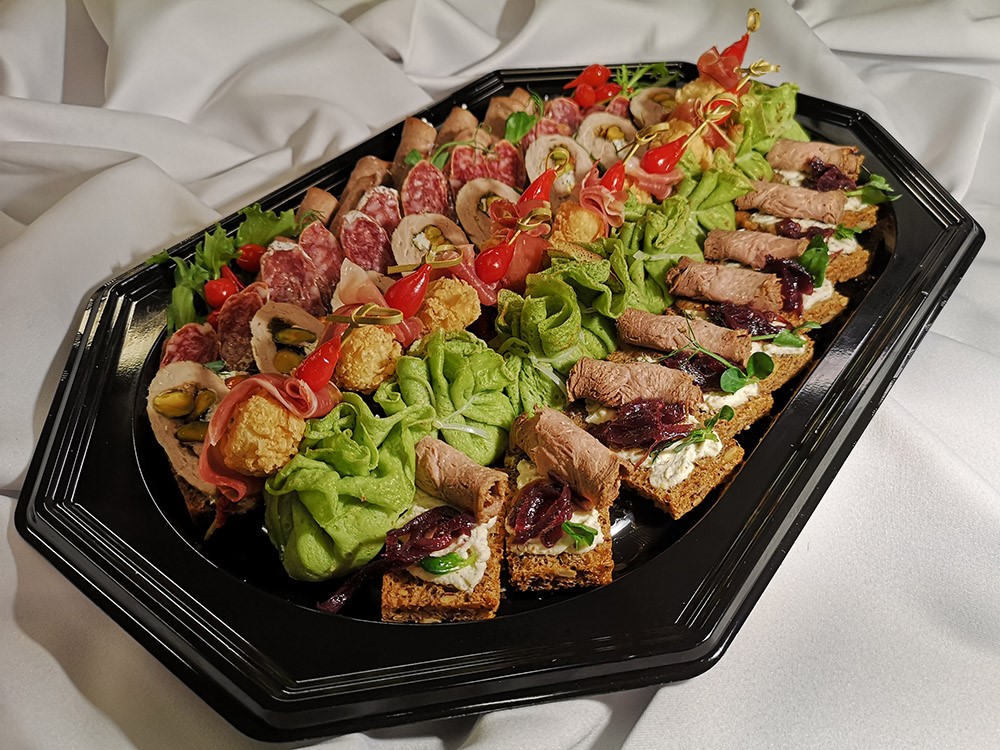 - Rudzu gruzdiņš ar svaigo sieru, rostbifu un sīpolu marmelādi 8 gb.